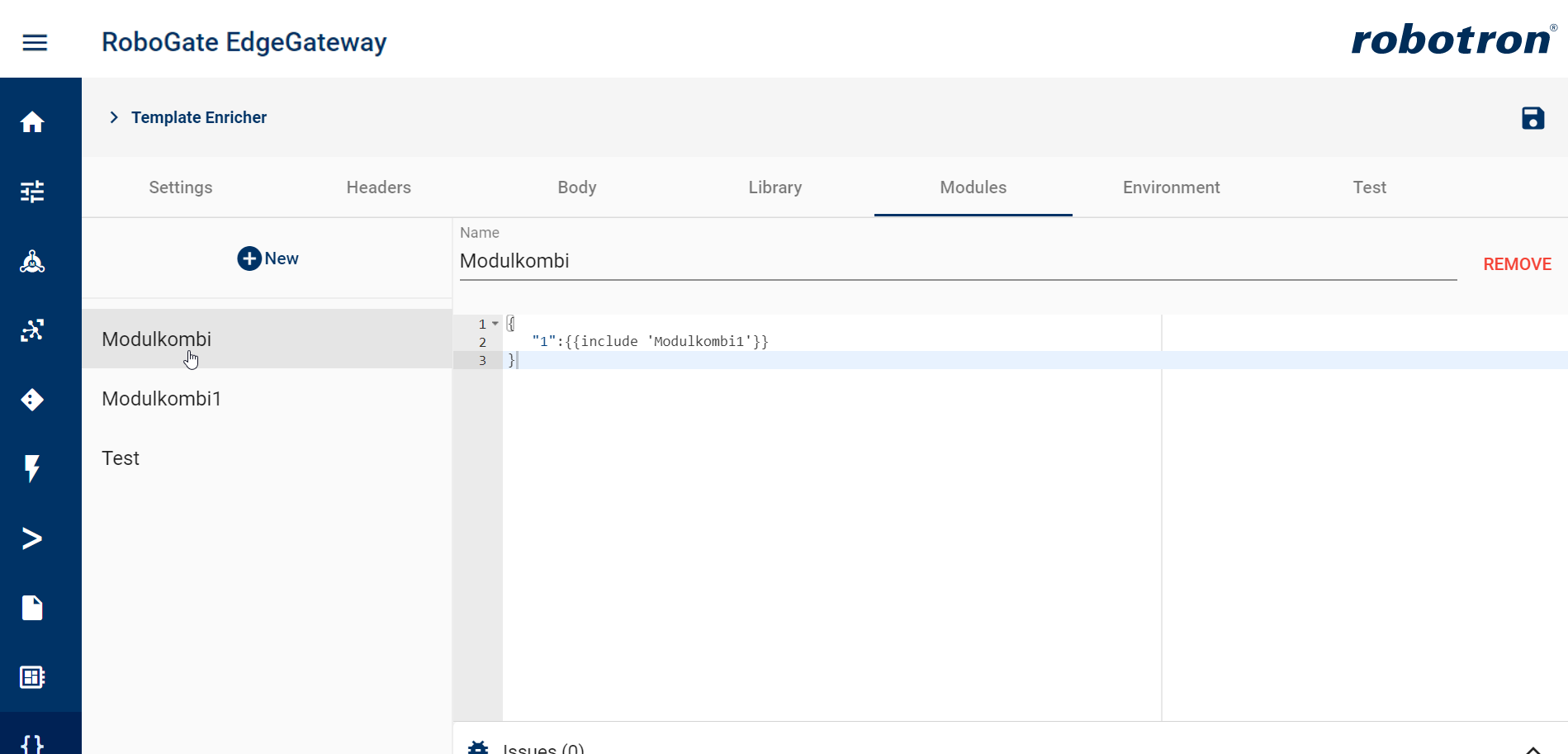 Das Template Enricher-Modul kann über die Auswahl des Moduls auf der Startseite oder über die linke Menüleiste der EdgeGateway UI aufgerufen und konfiguriert werden.